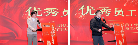 随后,表彰环节如期而至,现场掌声雷动。公司对2025年度表现突出的集团优秀员工与部门优秀员工进行了隆重表彰,获奖员工依次上台领奖,接过荣誉奖杯脸上洋溢着自豪与喜悦。